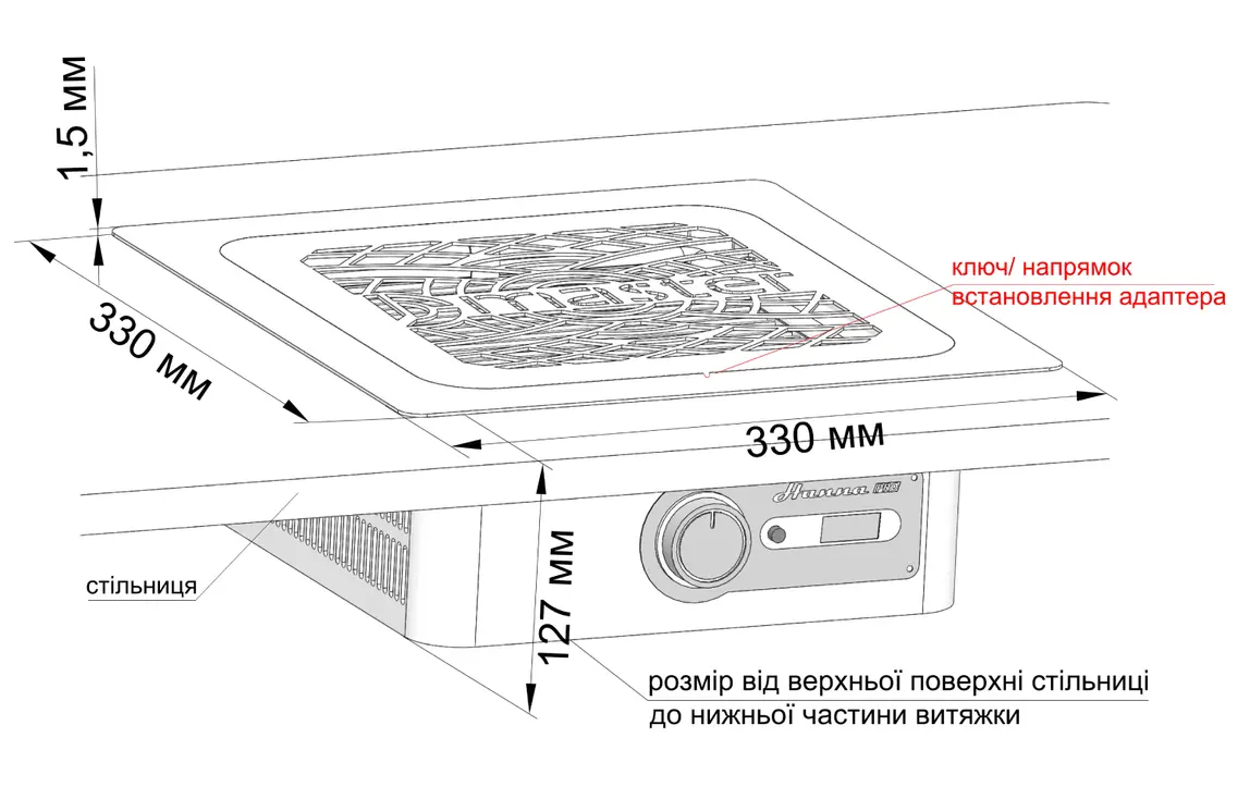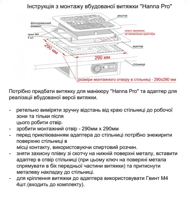 Адапртер для реалізації вбудованої версії витяжки для манікюру Hanna та Hanna PRO